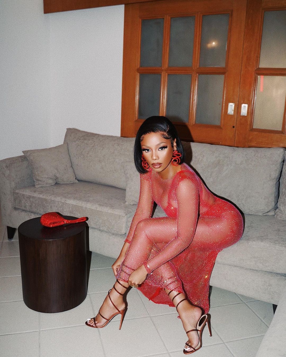 Matheba has just posted a new pic where she is seen wearing a red see-through dress, leaving everyone left for words.