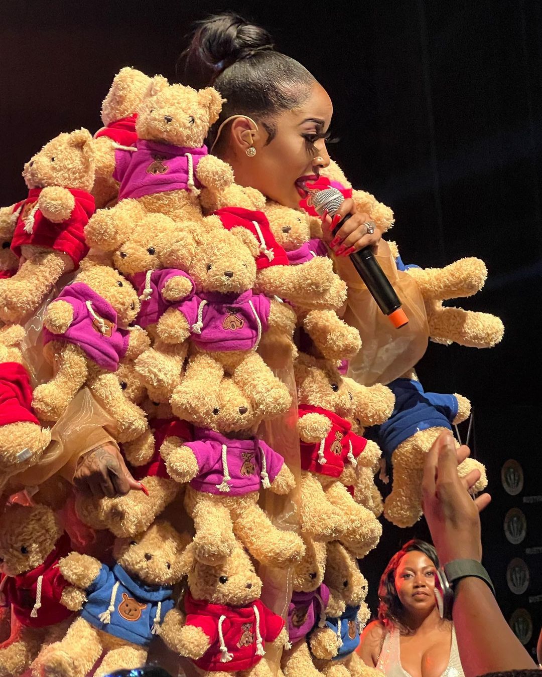 The preggy star rocked a significant outfit that was decorated with over 15 teddy bears.