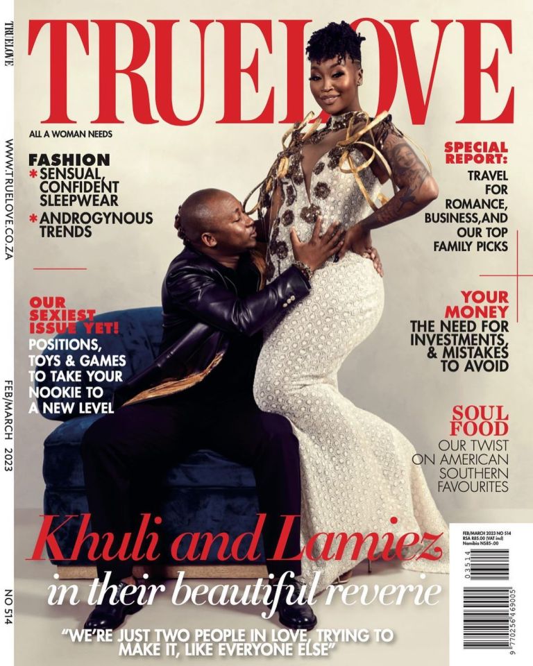 South African DJ, television personality, radio presenter, record producer, businesswoman, and philanthropist, Lamiez Holworthy and her husband, rapper Khuli Chana shine on the True Love magazine cover.