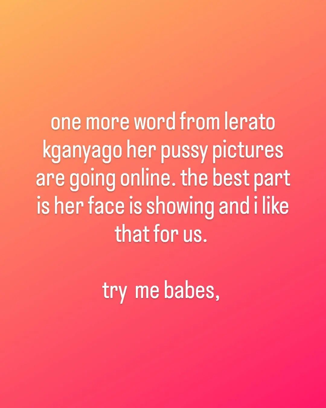 Musa promised multiple bombshells if Lerato continued to provoke her. The blogger threatened to leak Lerato’s nudes online. “One more word from Lerato Kganyago her p**sy pictures are going online. The best part is her face is showing and I like that for us. Try me babes,” he wrote.