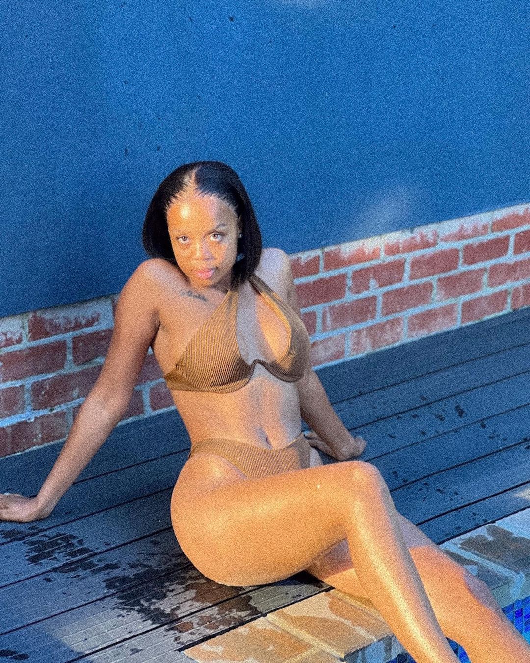 South African actress, host, and media personality, Ntando Duma‘s latest snaps have left hundreds of thousands of social media users liking what they see. Taking to her Instagram, she shared stunning pictures of herself rocking a brown two-piece bikini and chilling next to the swimming pool.