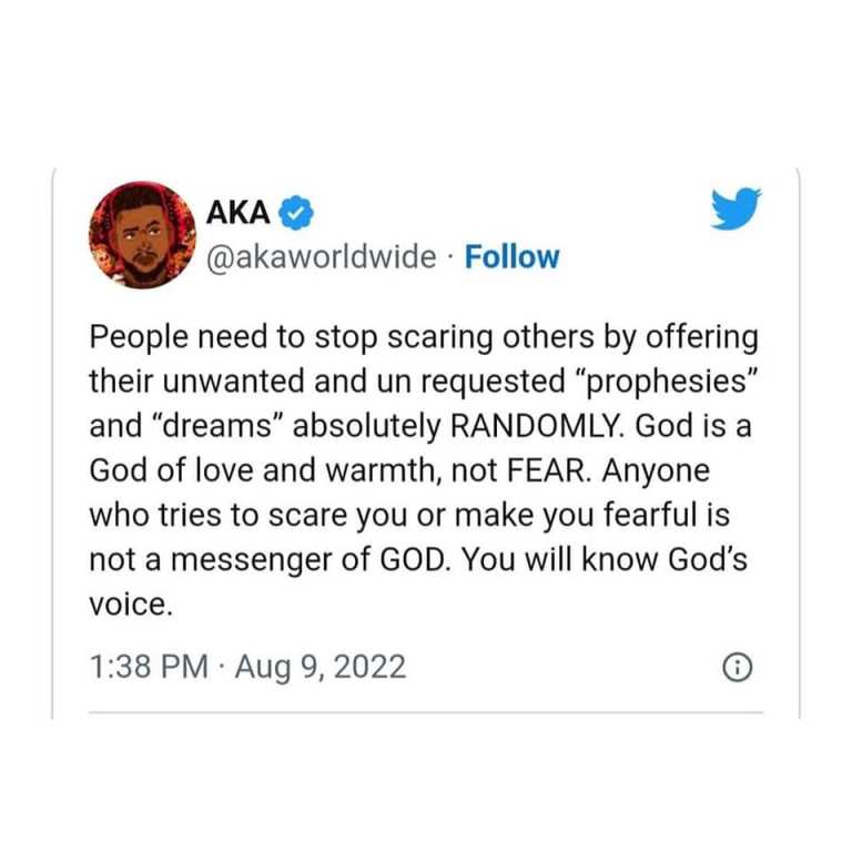 When Orasi made the prophecy sometime last year in August and reached out to AKA, the rapper took to Twitter and said;